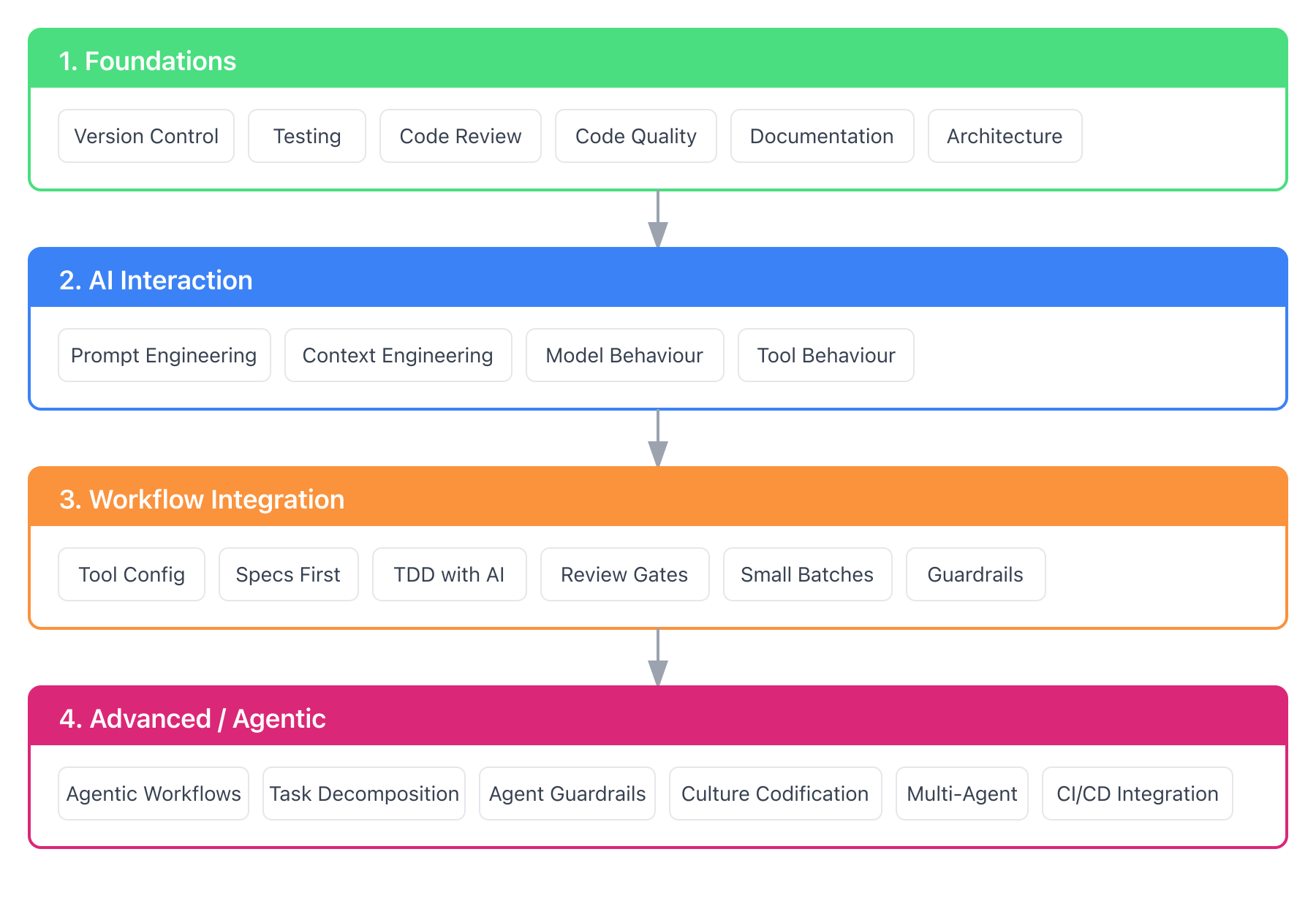This post answers that: a map of the skills that make up intelligent Engineering, organised into a learning path you can follow whether you’re an individual contributor looking to level up or a tech leader building your team’s AI fluency.